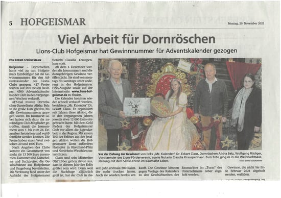 HNA, 08. Oktober 2021 - Bekanntgabe der Adventslotterie: